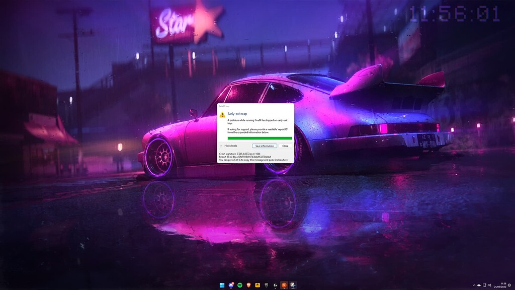 Keep on crashing with "Earlyexit trap" error... Need help ASAP FiveM Client Support Cfx.re